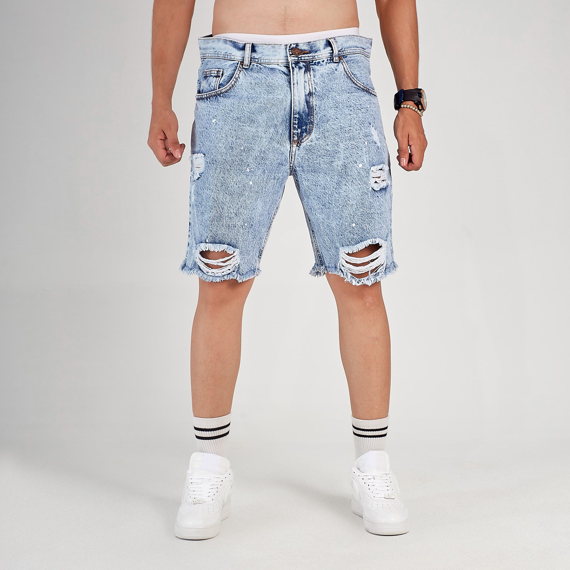 Bermuda Denim Lavado Desgastada con Rotos Unike